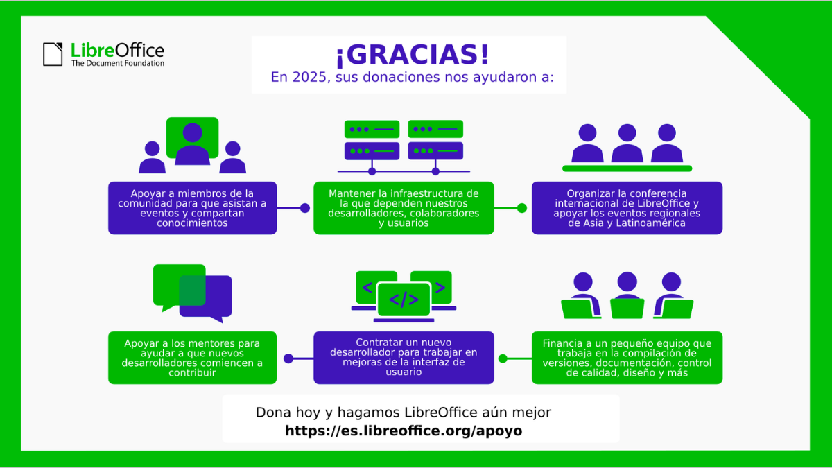 ¡LibreOffice existe gracias al apoyo de personas como tú!