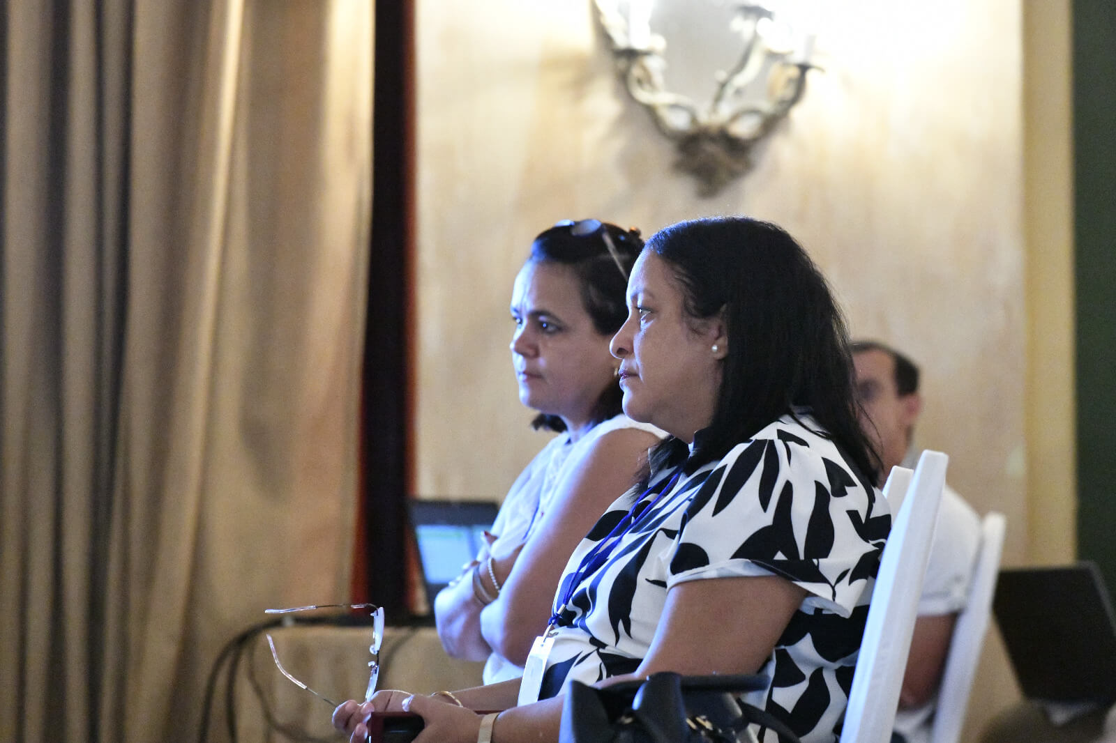 Mayra Arevich (en primer plano), Ministra de las Comunicaciones de Cuba, y Ailyn Febles, Viceministra.