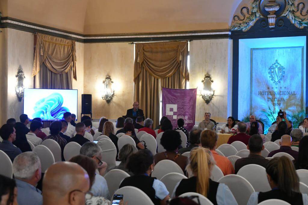 Iniciamos Cibersociedad 2025 con Gustavo Pacheco representando al proyecto LibreOffice en la Sesión Inaugural, junto con la ministra de Comunicaciones de Cuba, Mayra Arevich, el presidente de la UIC, Omar Correa, el representante del Comité Central del PCC, Omar Pérez Salomón, y la presidenta del Comité Científico, Tatiana Delgado.