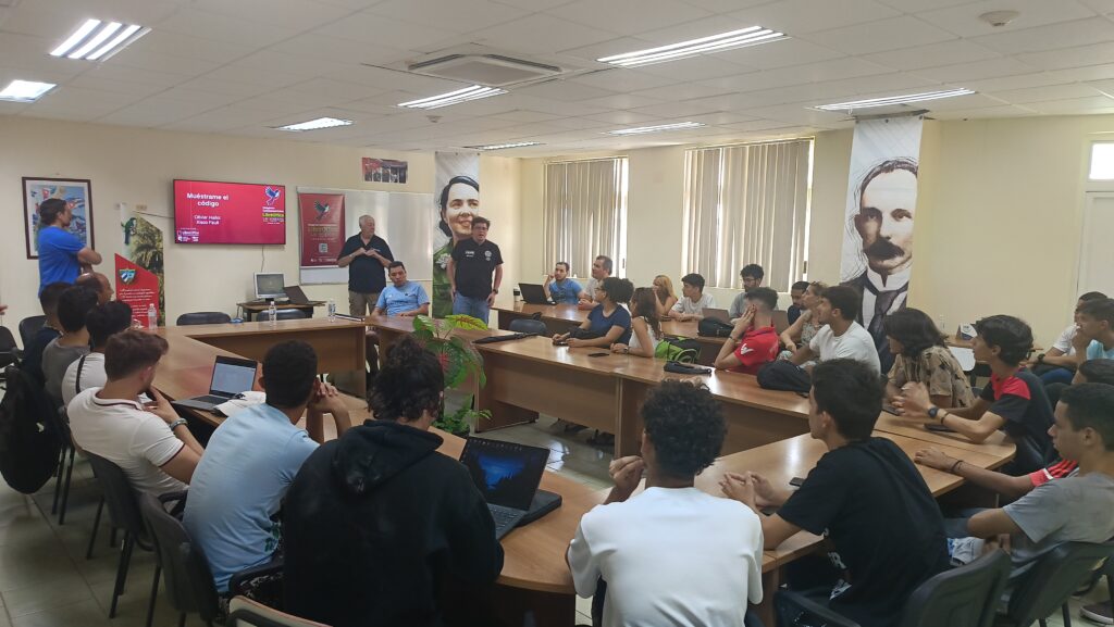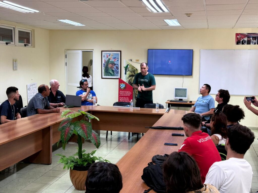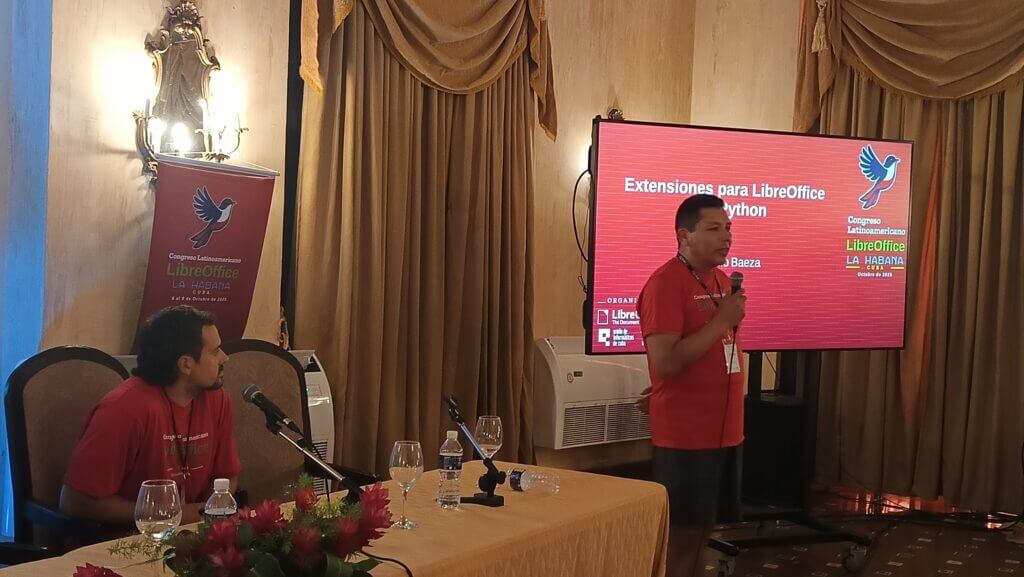 También fue el momento de conocer personalmente al profesor Joaquín Pina, de la UIC de La Habana. El profesor Pina será el punto focal de contacto de la comunidad cubana. Por iniciativa de Pina, Hanoi Calvo y Liber Luis González, se formó un grupo en línea con estudiantes y profesionales vinculados a la UIC. Este grupo de trabajo tendrá como objetivo el estudio y desarrollo de extensiones para LibreOffice, con posibles resultados para el próximo FLISOL [10], el evento de Software Libre descentralizado más importante de América Latina, en abril de 2026.